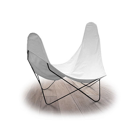 nacido como un homenaje a la célebre silla BKF, manteniendo cuidadosamente su escencia, su forma muta para albergar a 2 personas entre las alas suspendidas de la mariposa transformada, que devienen en un sitio íntimo y sensual para un encuentro distendido.