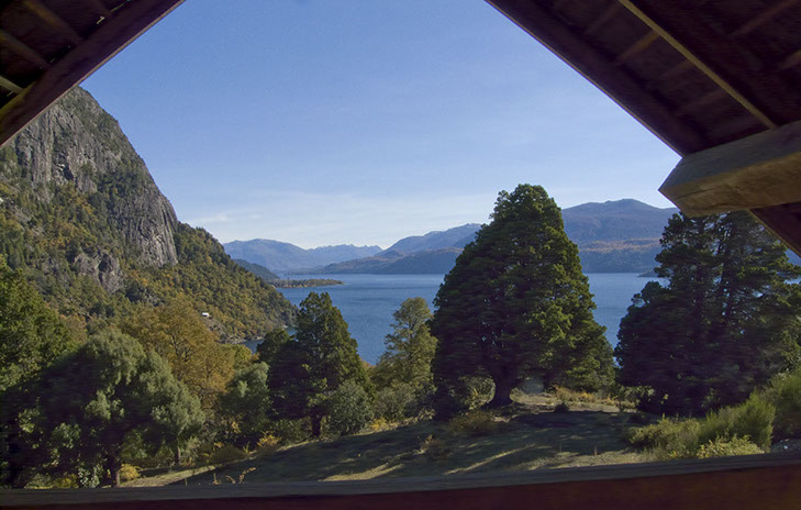 El edificio se sitúa sobre una elevación desde la que se domina el lago en toda su extensión y la cordillera argentina y chilena.